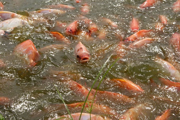 Como ejemplo, si se ha dedicado 100 m² de área para plantas se necesita suministrar a los peces unos 7-10 kg de alimento.