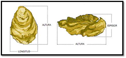 Las mediciones se pueden realizar con un Vernier tomando en cuenta la altura del organismo que se mide desde el umbo al extremo distal de la concha, posterior a esto se mide la longitud: la medida es ventral perpendicular, y finalmente medir el espesor del mismo, donde se mide la distancia entre dos valvas o conchas.