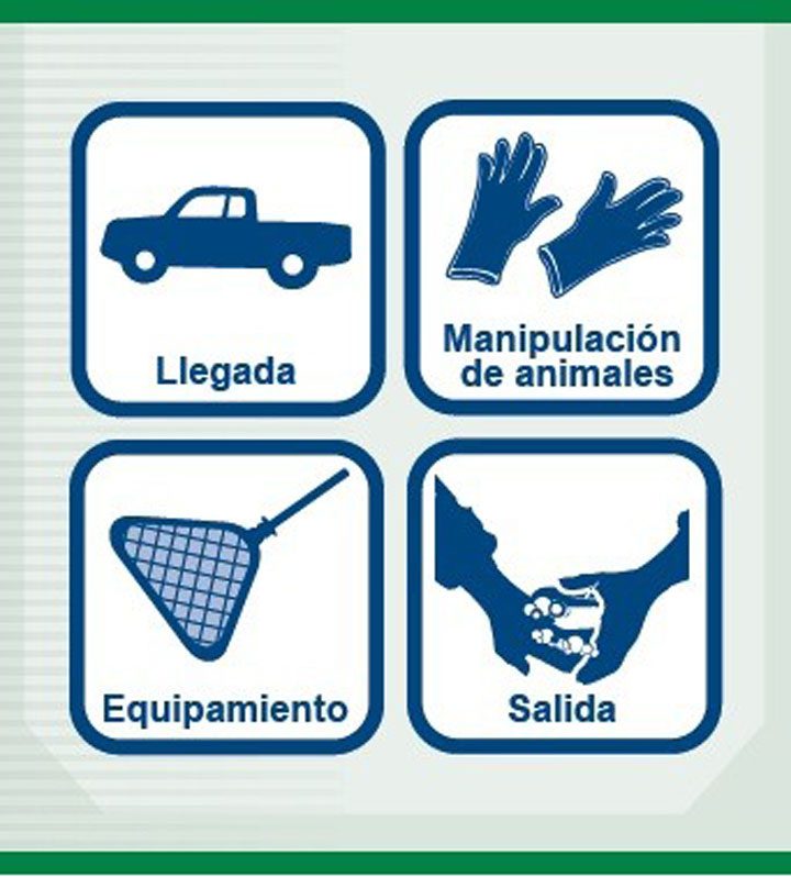 Es de resaltar que se deben lavar o desinfectar las manos antes y después del contacto con los animales acuáticos, especialmente al moverse entre áreas en el sitio.