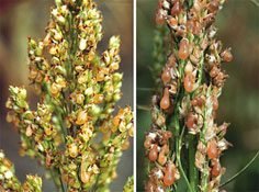 Las plantas tienen un crecimiento más lento, los tallos son más frágiles y las panojas emergen antes que en las plantas sanas. El daño está limitado enteramente a las panojas, reduciendo el rendimiento y el valor como forraje.