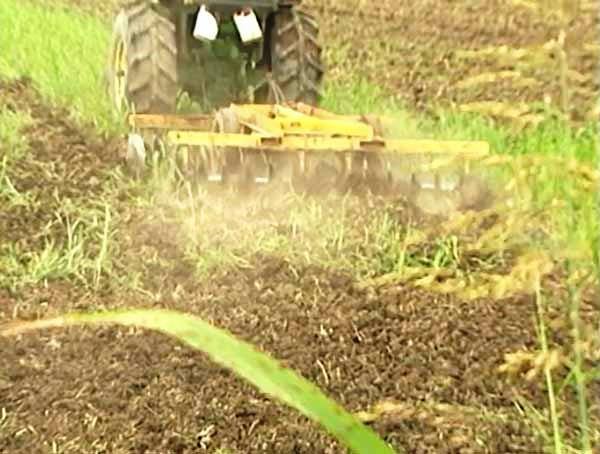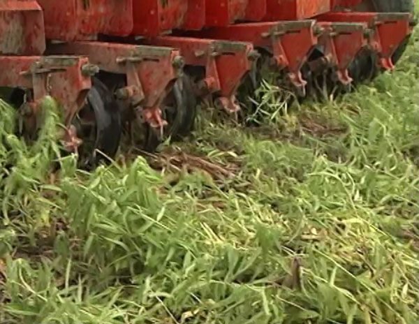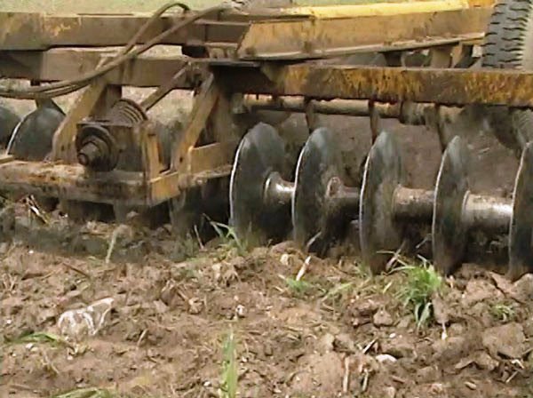 A los quince días, la acción de la rastra, de dos lotes de discos, en forma de V, con un grupo convexo y el otro cóncavo, desmenuza los terrones y restos de malezas en la superficie del suelo, y nuevas semillas de malezas que broten de nuevo, aplicando como mínimo dos pases cruzados.