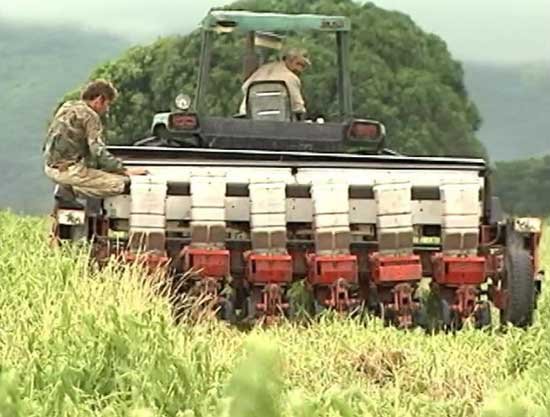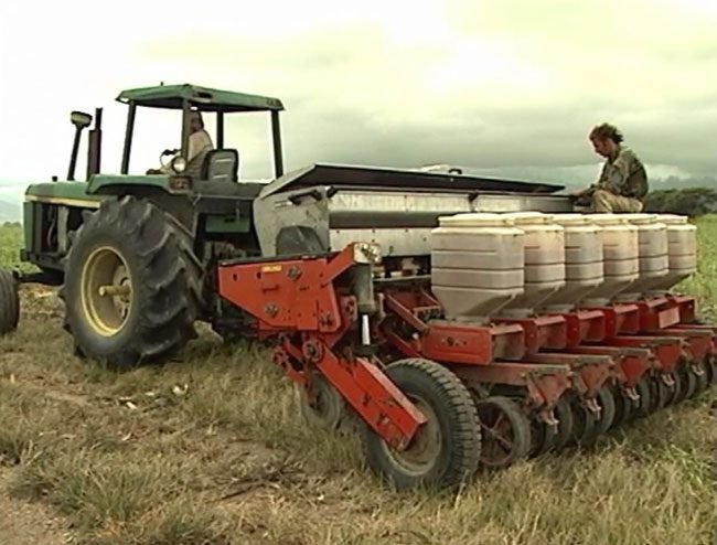 Cultivo de maíz - Un tractor sembrando en terreno maíz