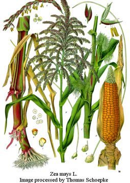 El Maíz (Zea mays) es una poacea anual, de rápido crecimiento que actualmente ostenta el título del cereal más producido y consumido del mundo; superando al arroz, al trigo y al sorgo. Es originaria de Mesoamérica (actual México) y fue domesticada por los nativos mucho antes del descubrimiento del continente. Su difusión en Europa y el mundo, es reciente y data del siglo XVII.