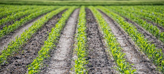 Cultivo de maíz  - Terreno sembrado de maíz en hileras