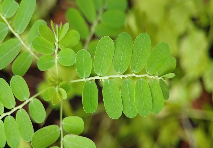Su follaje es frondoso, de color verde brillante y se conforma de hojas pinnadas de 7,5 a 15 cm de largo, cada una con 10 a 20 folíolos opuestos y pares de 1,25 a 2,5 cm, los cuales cierran durante la noche. Por otra parte, las hojas son normalmente perennes, más pueden llegar a desfoliarse levemente en presencia de extremada sequía.