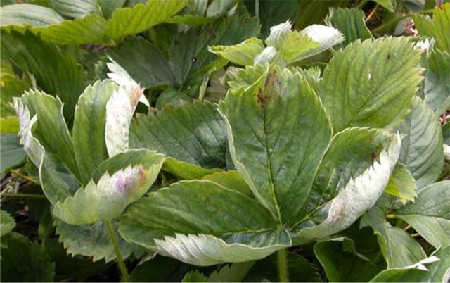 Enfermedad causada por el hongo Oidium fragariae, se manifiesta como una pelusa blanquecina sobre ambos lados de la hoja. Prefiere las temperaturas elevadas, de 20 a 25 ºC, y el tiempo soleado, deteniendo su ataque en condiciones de lluvia prolongada. Persiste durante el invierno en estructuras resistentes como peritecas.