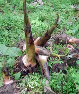 Se trata de una prodigiosa planta herbácea; fijada al suelo, mediante raíces adventicias y un tallo subterráneo llamado cormo o rizoma.