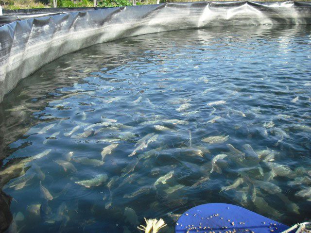 Los peces son engordados hasta tamaño comercial (30-40 cm), usualmente dentro de 9 meses, aunque algunos peces son engordados hasta tamaños más grandes sobre 20 meses.