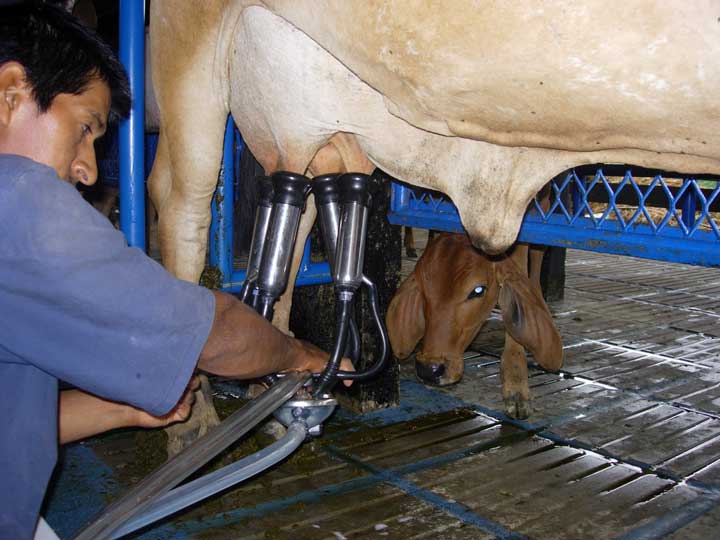Con respecto al ordeño manual se usa siempre amarrar al becerro en la pata delantera de la madre. Cabe mencionar que en vacas con alto nivel de genes Bos Taurus no es indispensable la presencia del becerro, pero si la vaca es acebuada es muy importante que el becerro este al lado de la madre; para ello, en ordeños mecánicos se usa una doble manga, una grande para la madre y otra pequeña para el becerro.