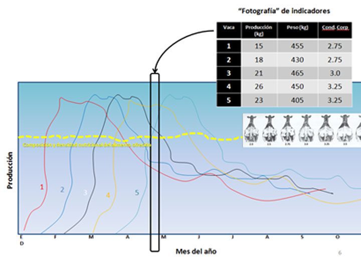 De ahí obtenemos información de los animales (ver cuadro inserto: “Fotografía de indicadores”) con diferente nivel de producción, peso y condición corporal.