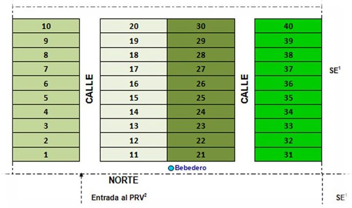 - Se emplea 1 día de uso (Du) y 39 días de descanso (Dd), lo que representa al año 9 Du y 356 Dd por potrero.
