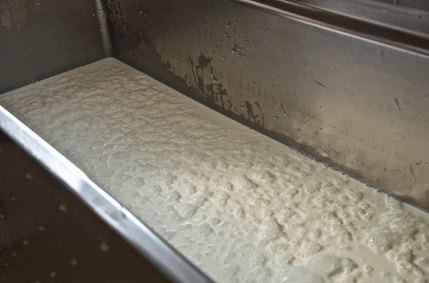 Una vez realizado el corte de la cuajada, los granos quedan muy blandos y con grietas en su membrana exterior, por lo que se procede a una agitación suave para no perjudicarlos. Si se deja que los granos sedimenten sobre el fondo de los tanques, se acumulan allí, formando granos que son difíciles de romper, es por ello que se recomienda realizar esta suave agitación.