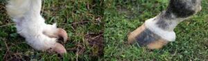 Los animales que tienen pezuñas caminan apoyando su peso en éstas y se denominan por ello ungulados, a diferencia de los primates o los osos, que caminan sobre la planta del pie (plantígrados).