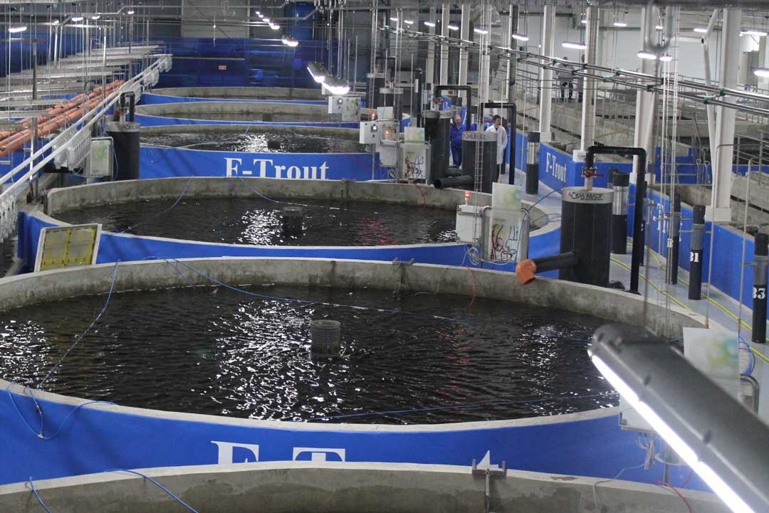 Las estrictas regulaciones ambientales han obligado a los criadores de truchas a introducir nuevas tecnologías para minimizar la descarga de sus granjas, por ello la recirculación fue introducida mediante el desarrollo de las denominadas granjas de peces para aumentar la producción, reduciendo al mismo tiempo el impacto ambiental.